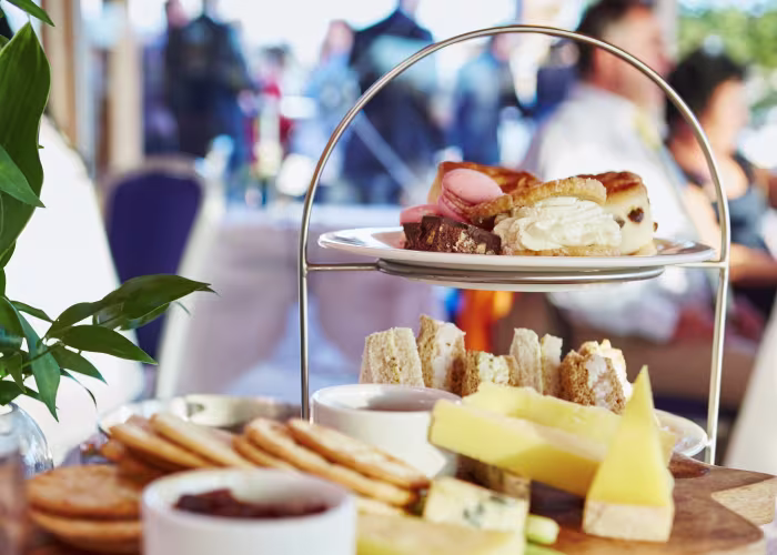 A buffet and carvery of gourmet standard; Starter, luxury buffet, dessert, cheeses and afternoon tea